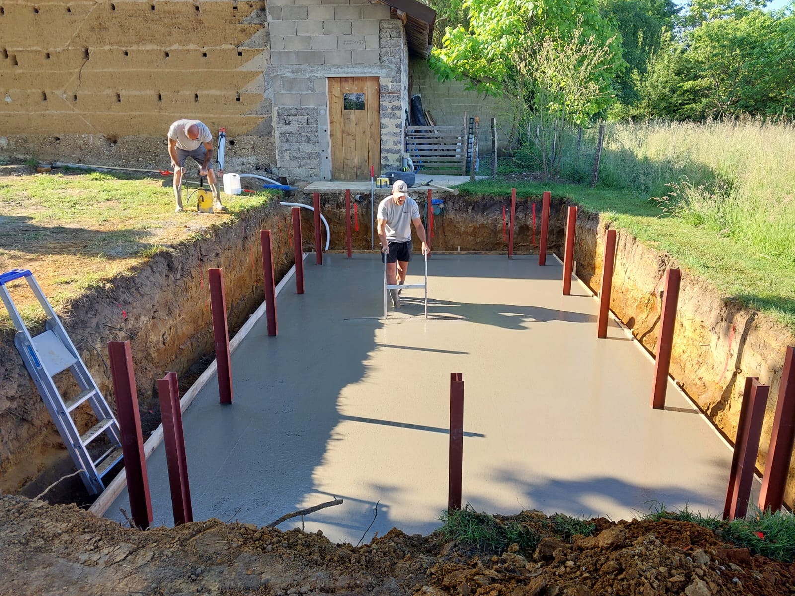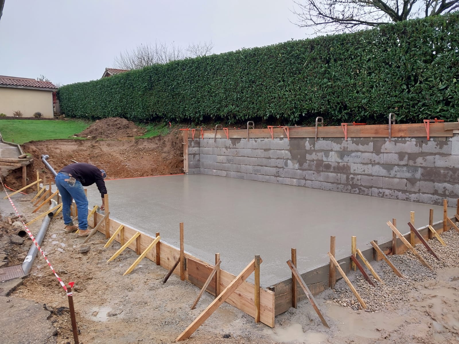 L’Entreprise vous accompagne pour la construction de maisons individuelles, d’extensions, de bâtiments agricoles ou industriels, ainsi que pour des travaux de rénovation complète : démolition intérieure, ouvertures de murs porteurs, planchers béton, enduits traditionnels ou encore réseaux d’eaux usées. Elle réalise également des aménagements extérieurs en béton, tels que terrasses, murs de clôture, piscines traditionnelles ou massifs pour structures.